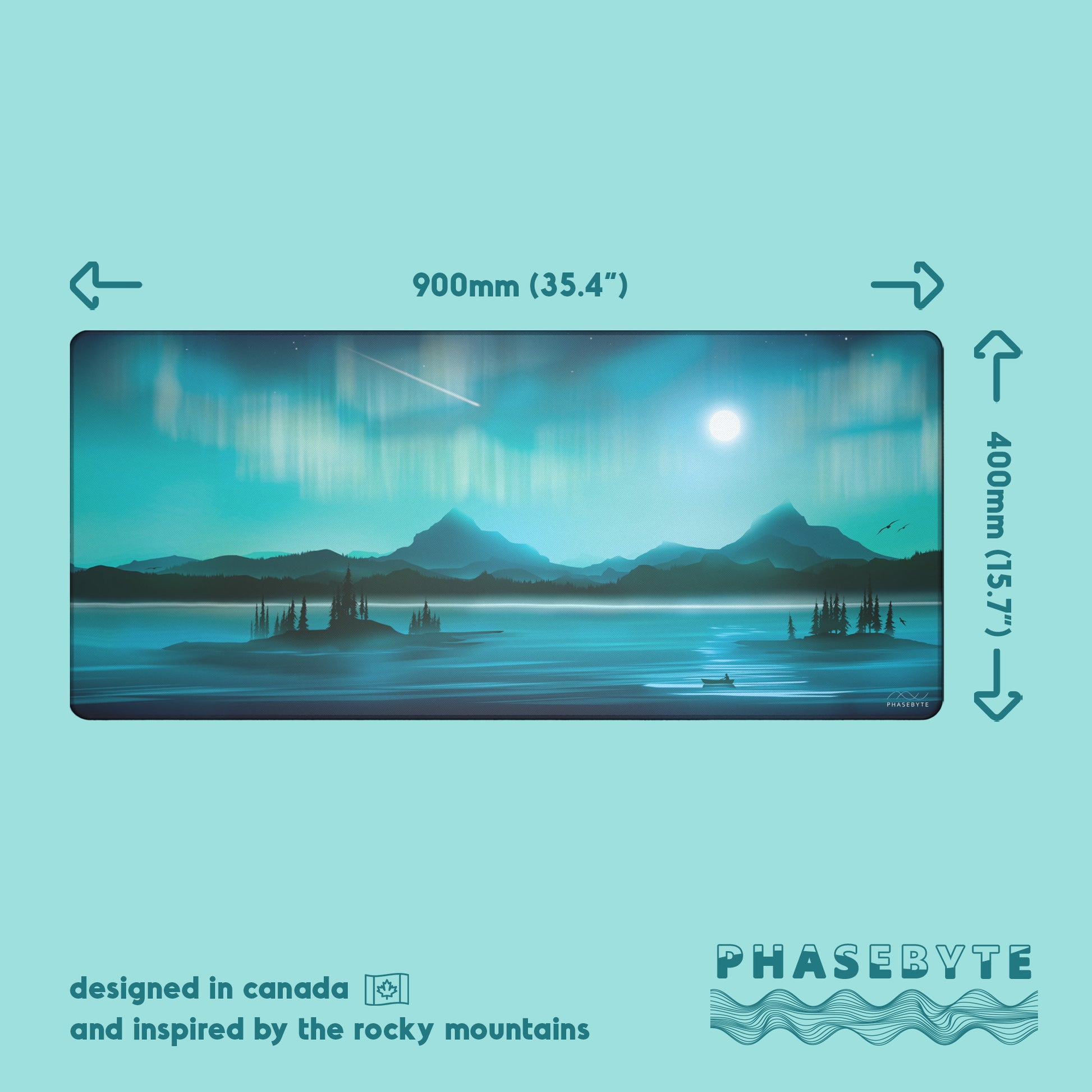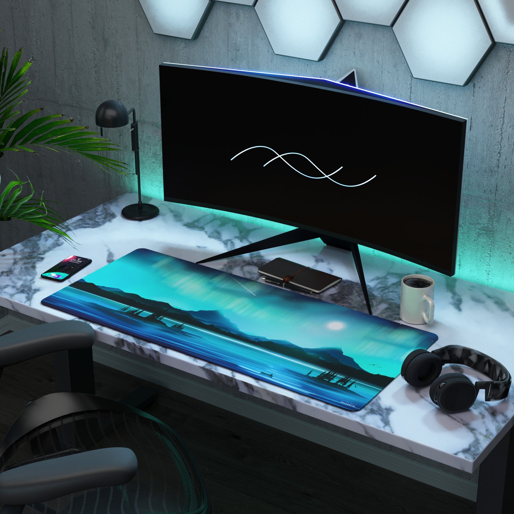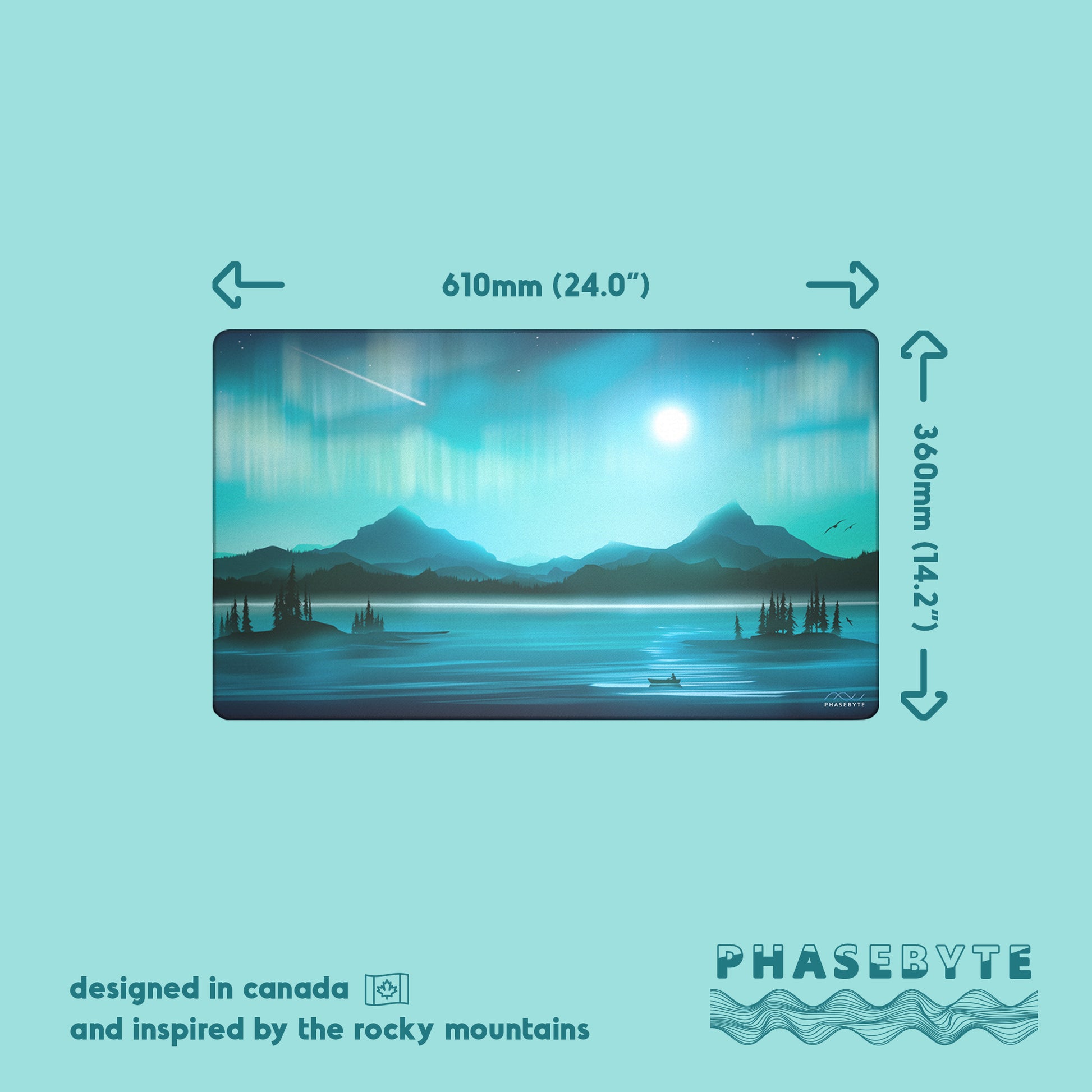 Aurora Peak is our exclusive northern lights inspired deskmat. It features a stunning aurora mountain scape with design that runs through the stitching.