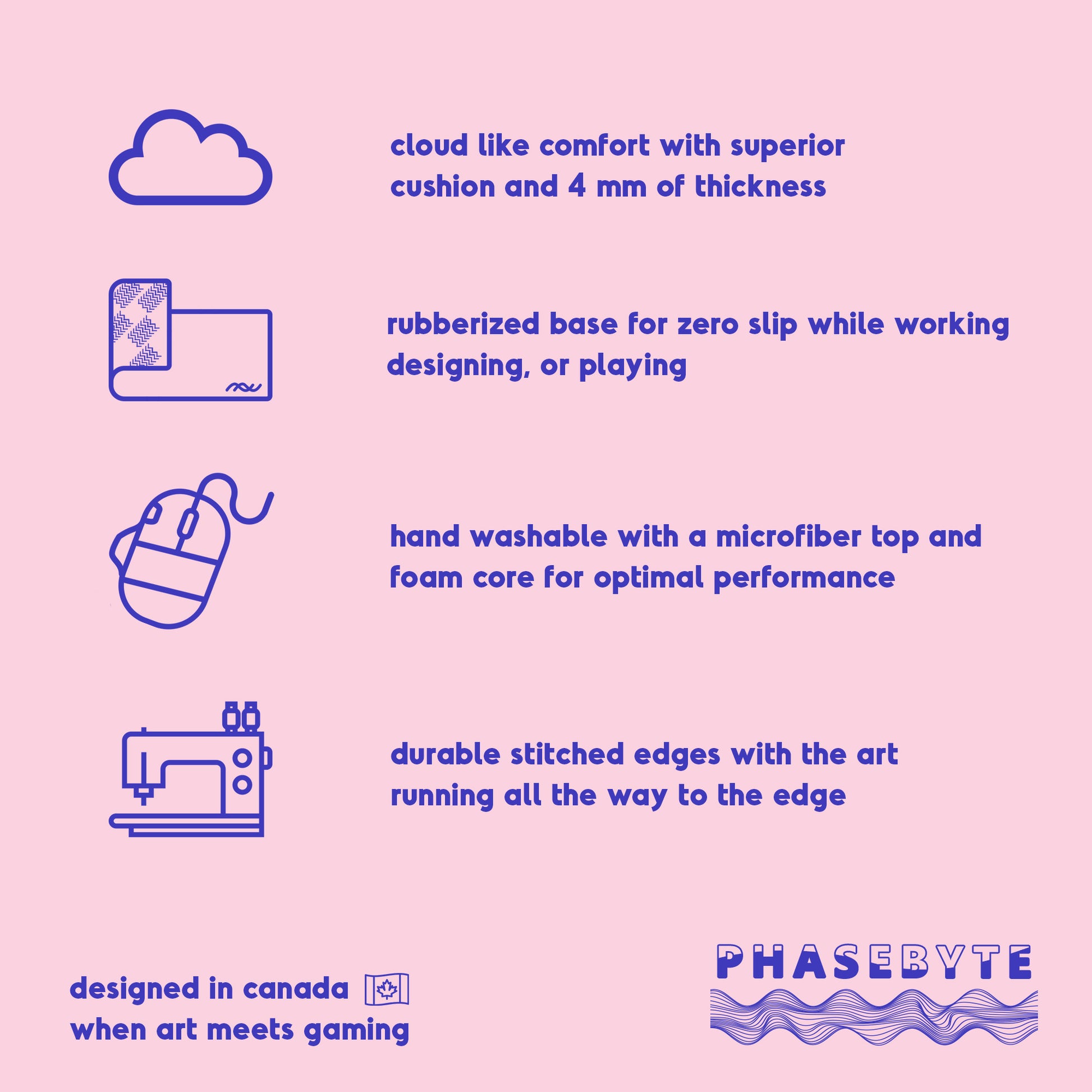 Our durable extended mouse pads are machine or hand-washable and resistant to color bleed.