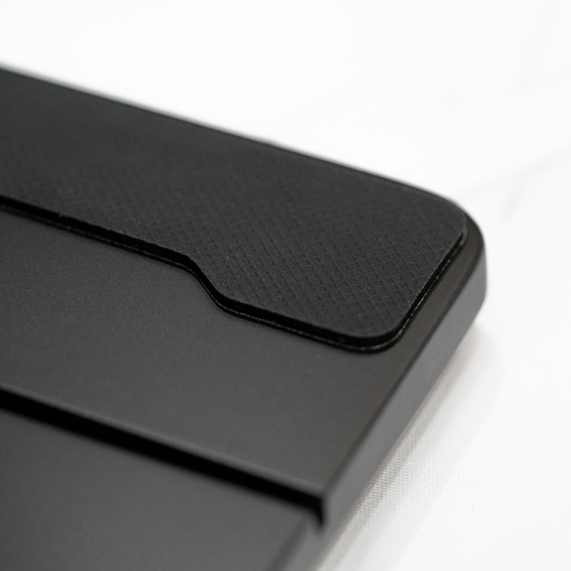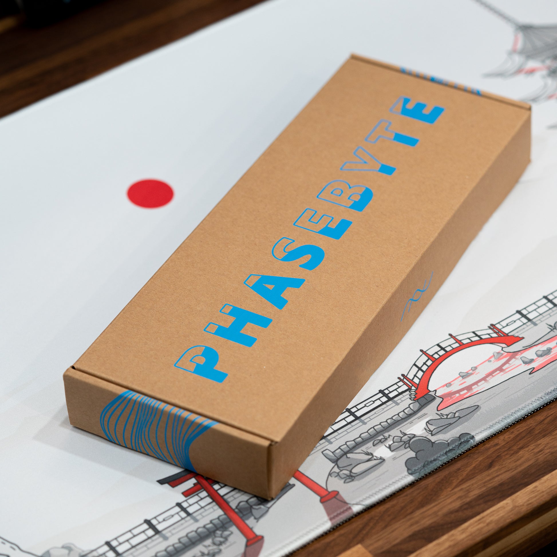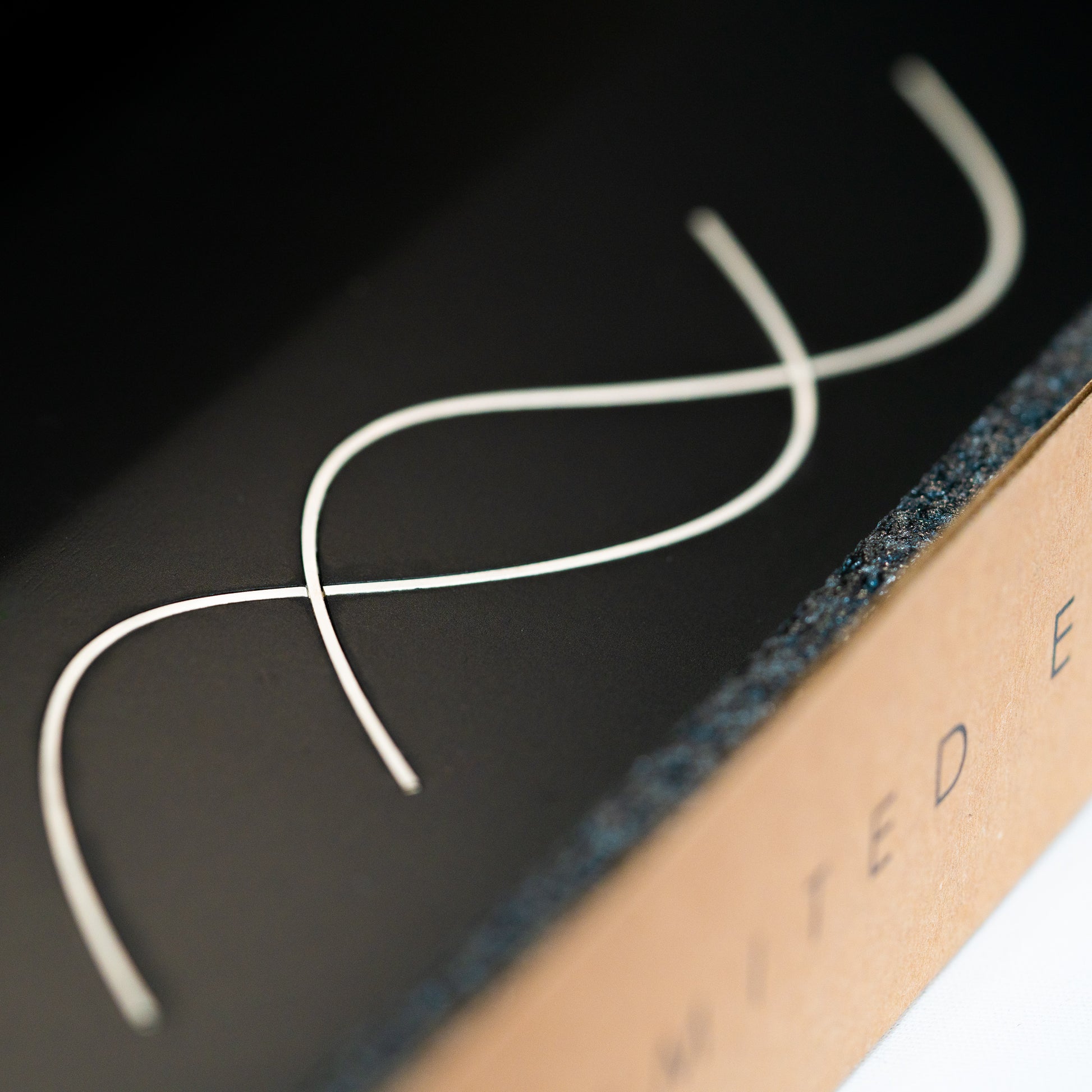 The wrist rest is cut from a single piece of solid wood and sanded to its ergonomic dimensions. The space for the inlay is carefully machined out, leaving room for an artisan to lay an 0.999 sterling silver wire in the PhaseByte motif. After painting, the inlay is placed and polished before resting in its limited edition box.
