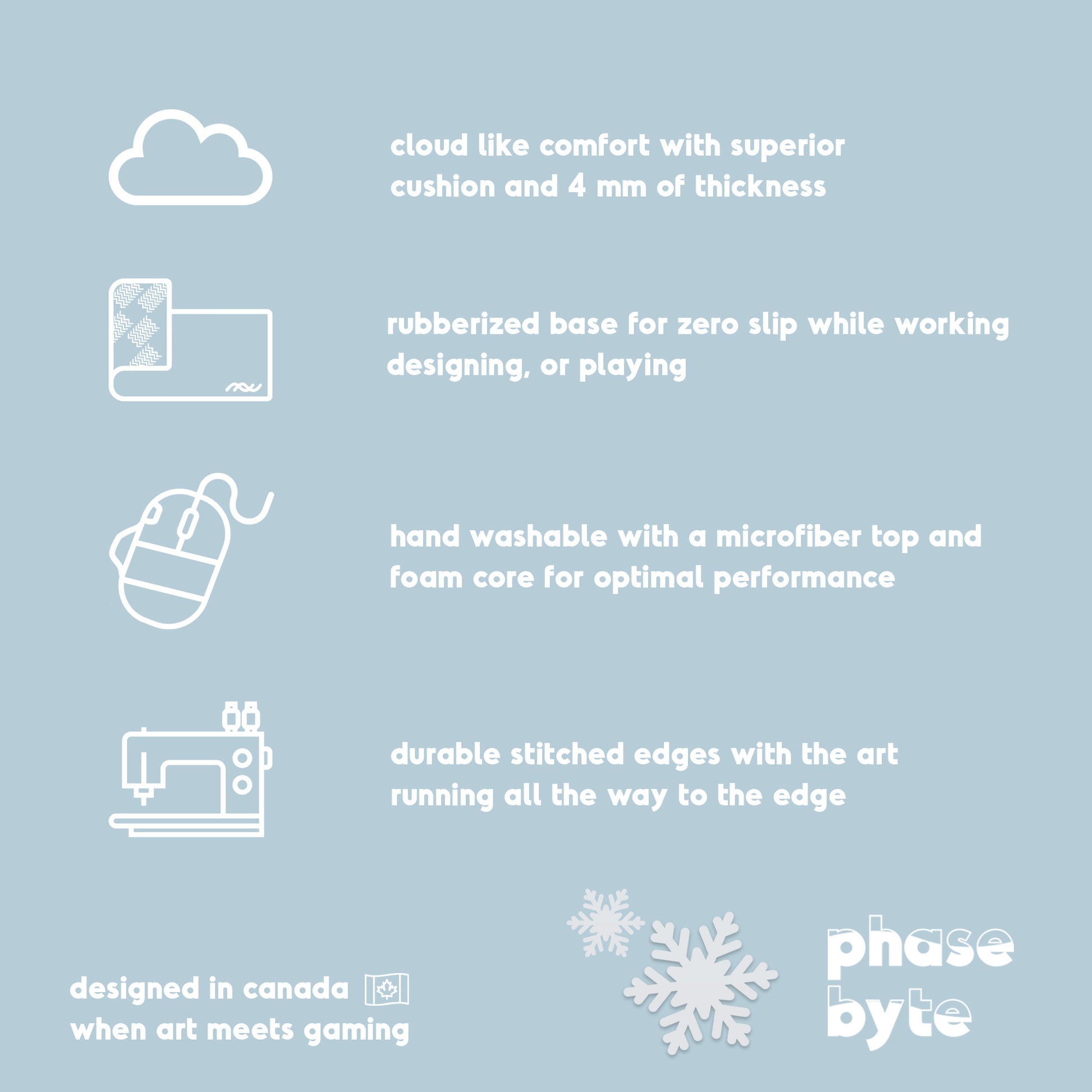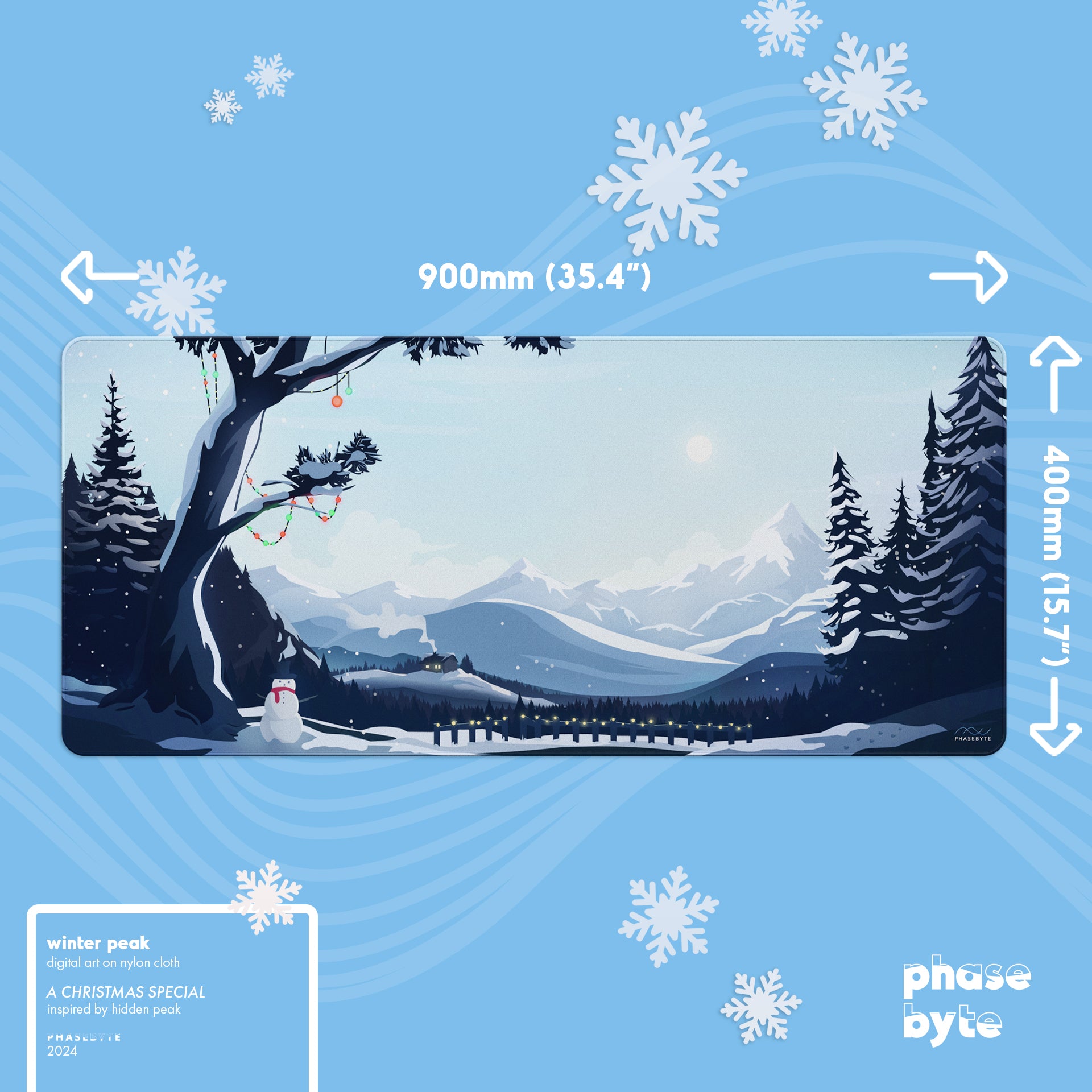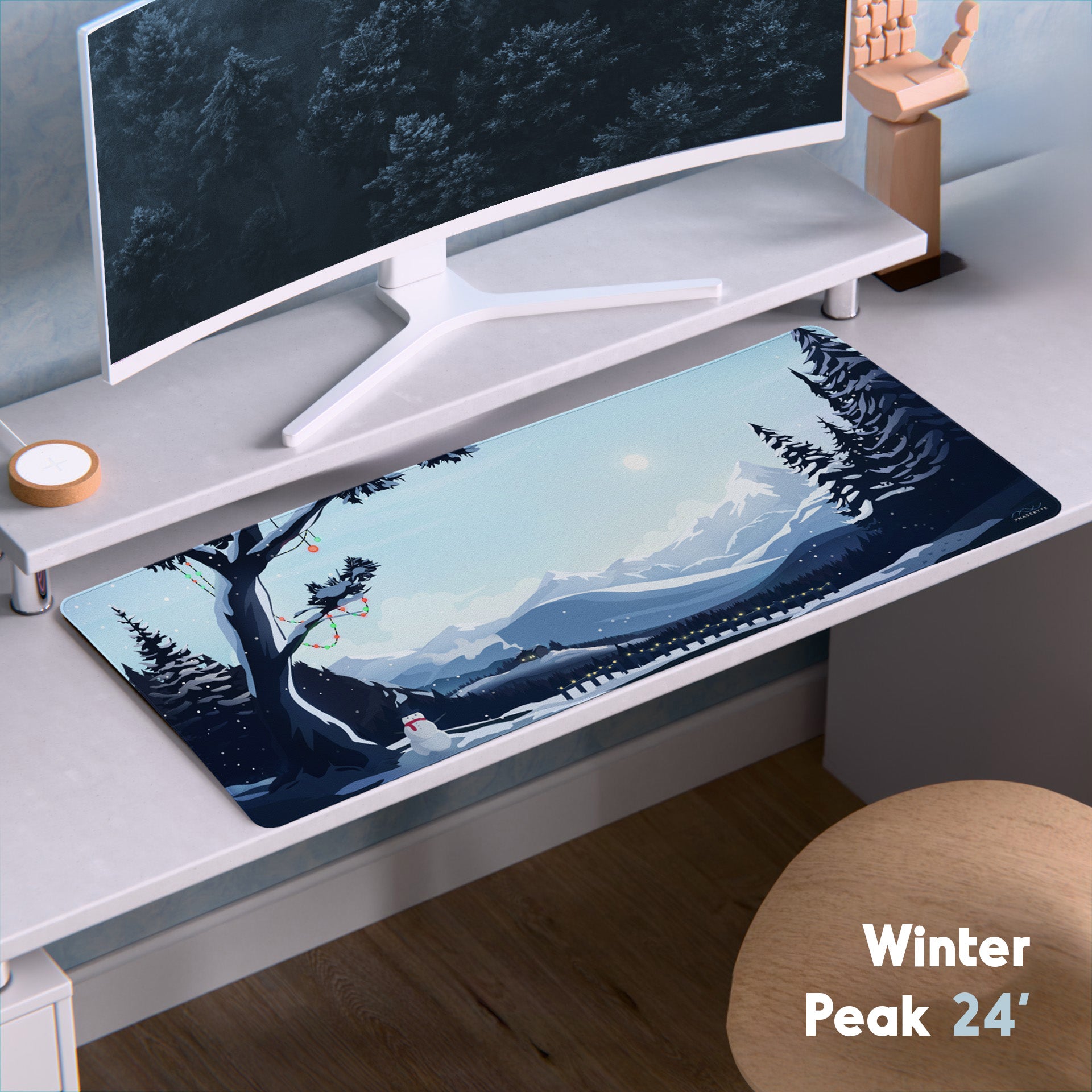 Inspired by our favorite season, Winter Peak is a Christmas twist on our most popular deskmat. Snow falls across a bright winter landscape in this limited edition deskmat, designed with a cloth top and rubber underlay with design that runs through the stitching.